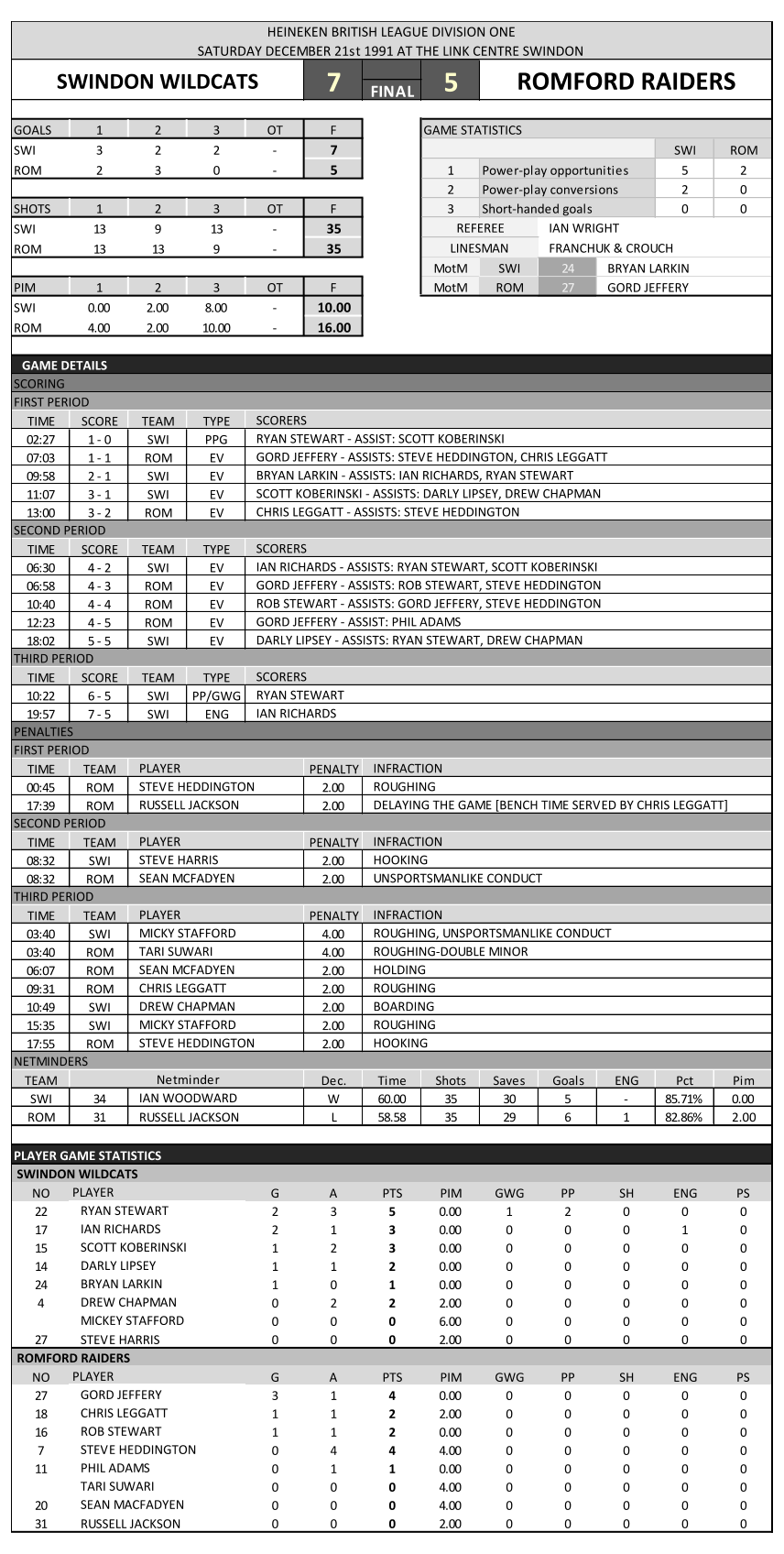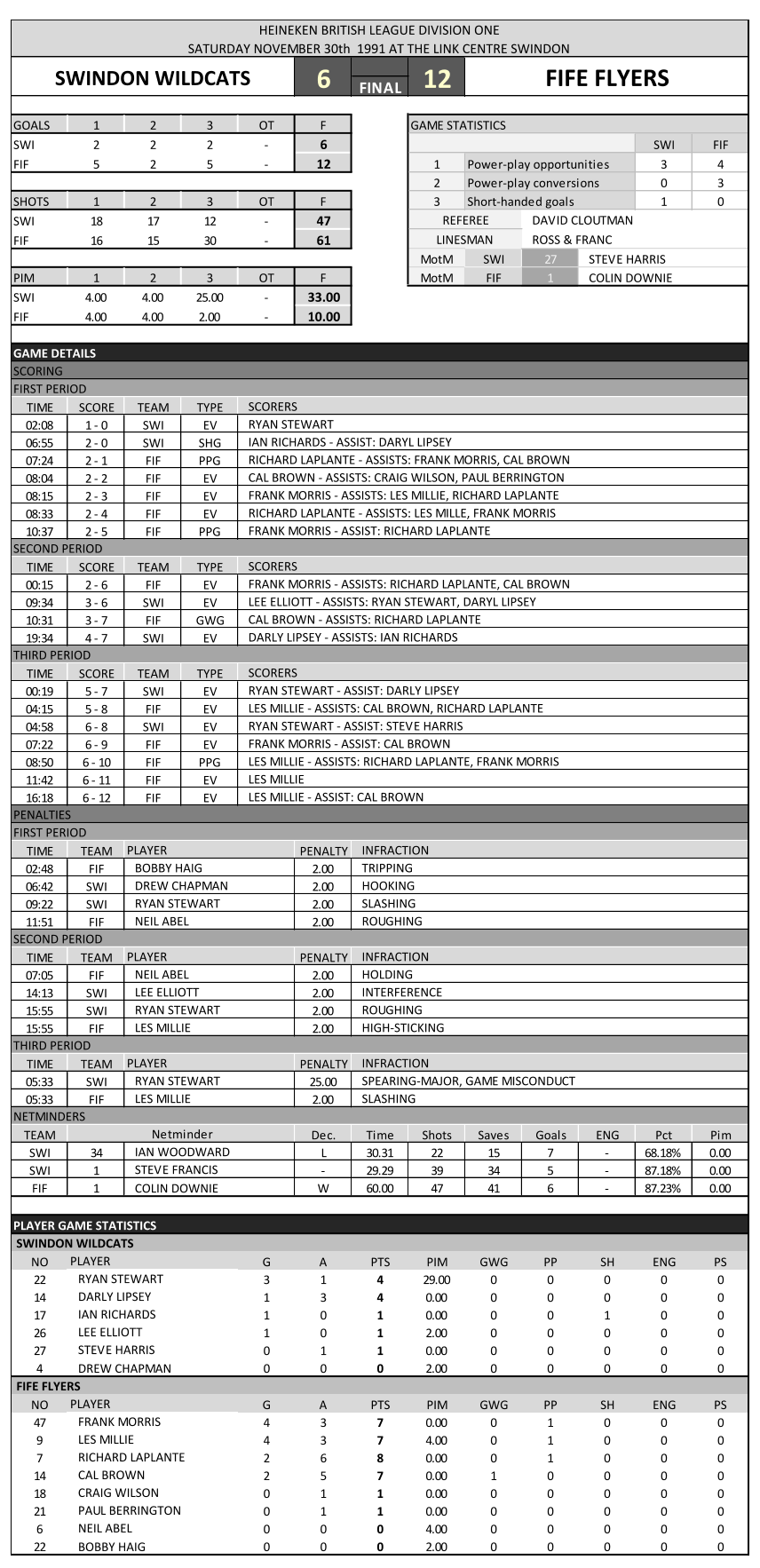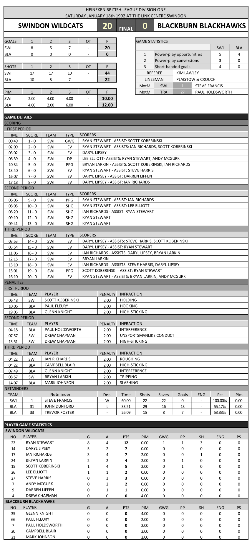 goalies in this league?’ when he saw the scores. See what you think, below are the links to the season